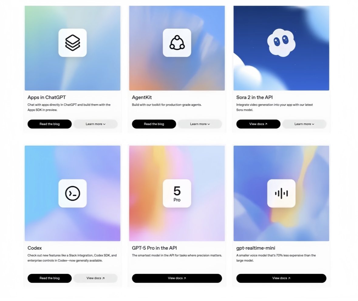• Sora 2视频生成API:高质量视频生成能力正式开放,让超级App里的内容能瞬间实现视觉化呈现,同时语音成本狂降70%。