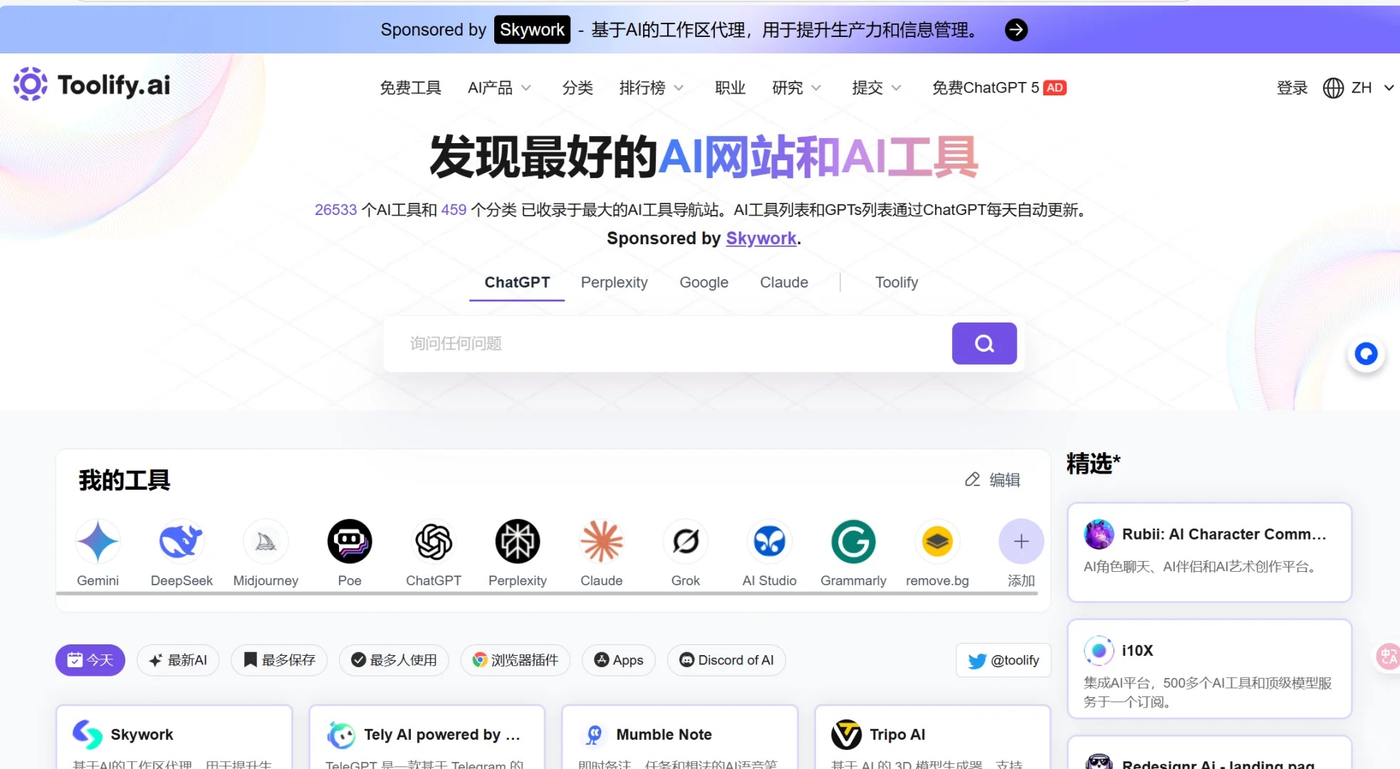 3. Toolify:主打“工具发现”功能,对刚上线的新AI工具收录速度极快,适合想第一时间体验行业前沿产品的产品经理。