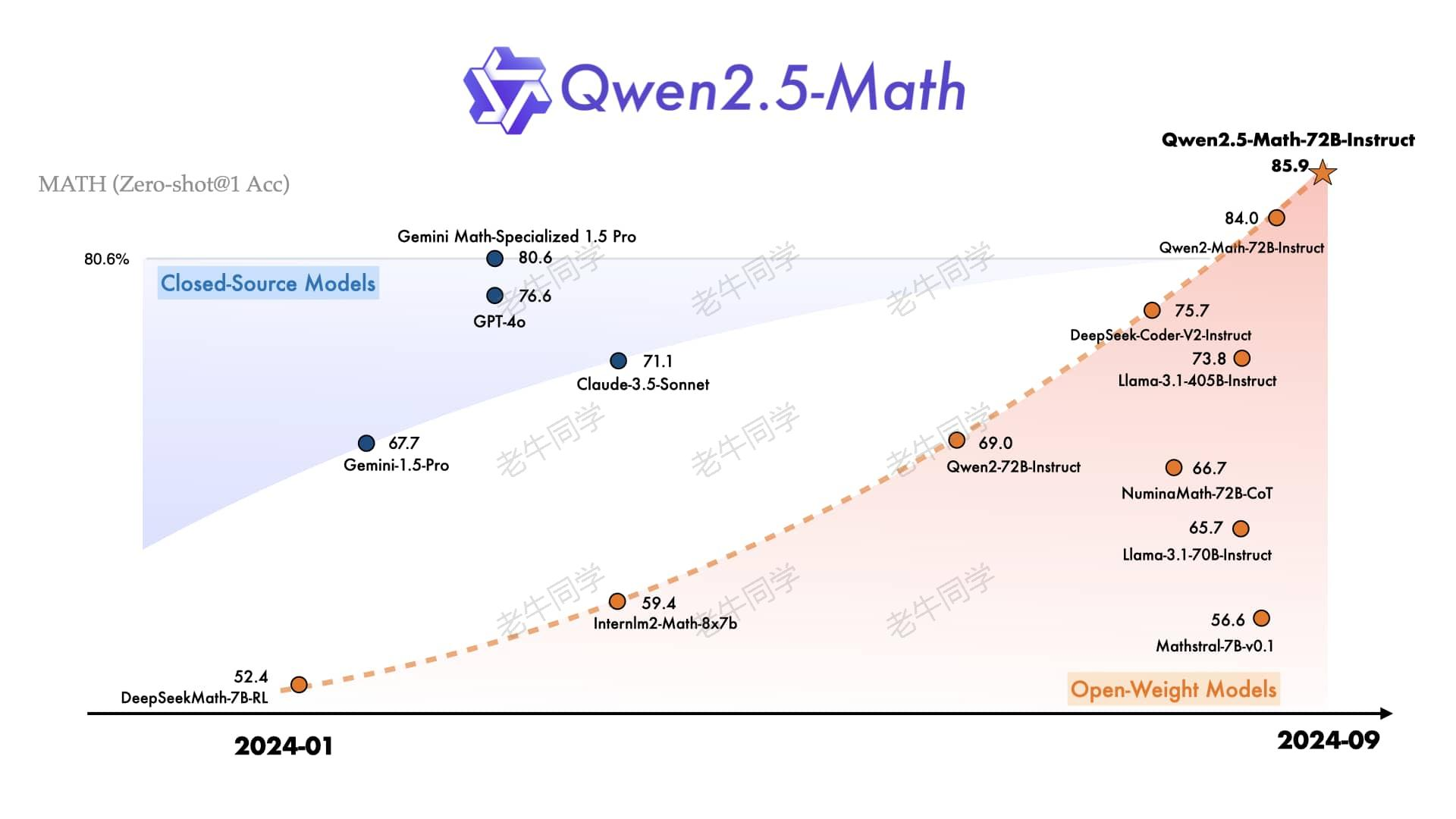 值得一提的是:Qwen 2.5 有三个全家桶,针对数学的 Qwen 2.5-Math、常规的大语言模型 Qwen2.5 和专门针对编程的 Qwen2.5-Coder 模型