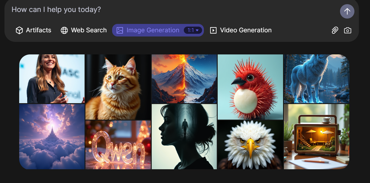 这个就是它相比于 DeepSeek 更加方便的地方了,它可以生成图片和视频,如下: