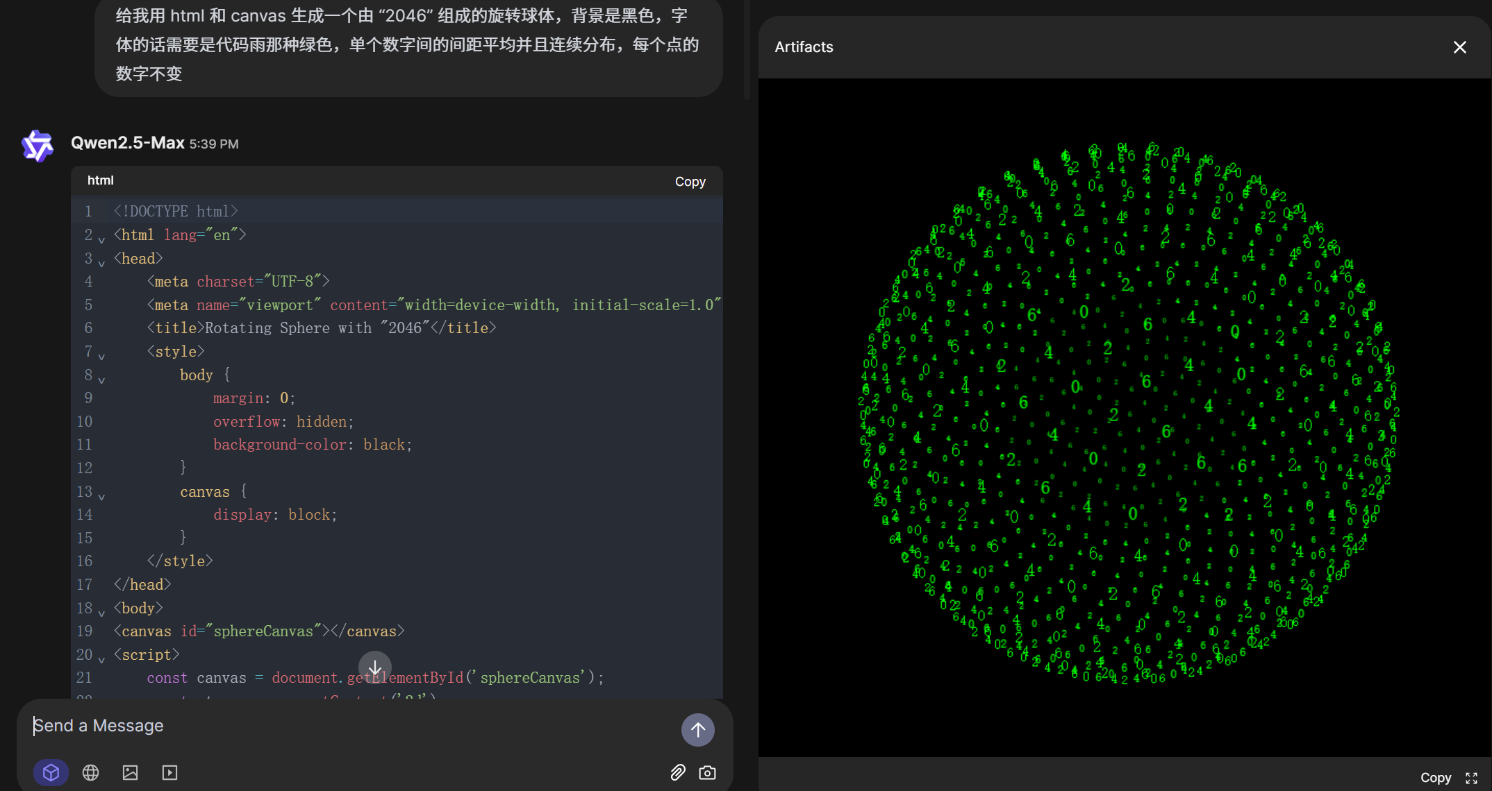 总的来说,这个 Qwen2.5 的功能还是挺齐全的,代码的实况预览也是可以的,比 DeepSeek V3 是要相对好些,但是如果要和 DeepSeek R1 比的话,就还是相对差一些,毕竟现在 DeepSeek 有点卡,本地部署显卡也带不动,用 Qwen 2.5- Max 是个不错的选择啦,当然啦,也期望 Qwen 2.5-Max 也能早日推出它的推理模型,
