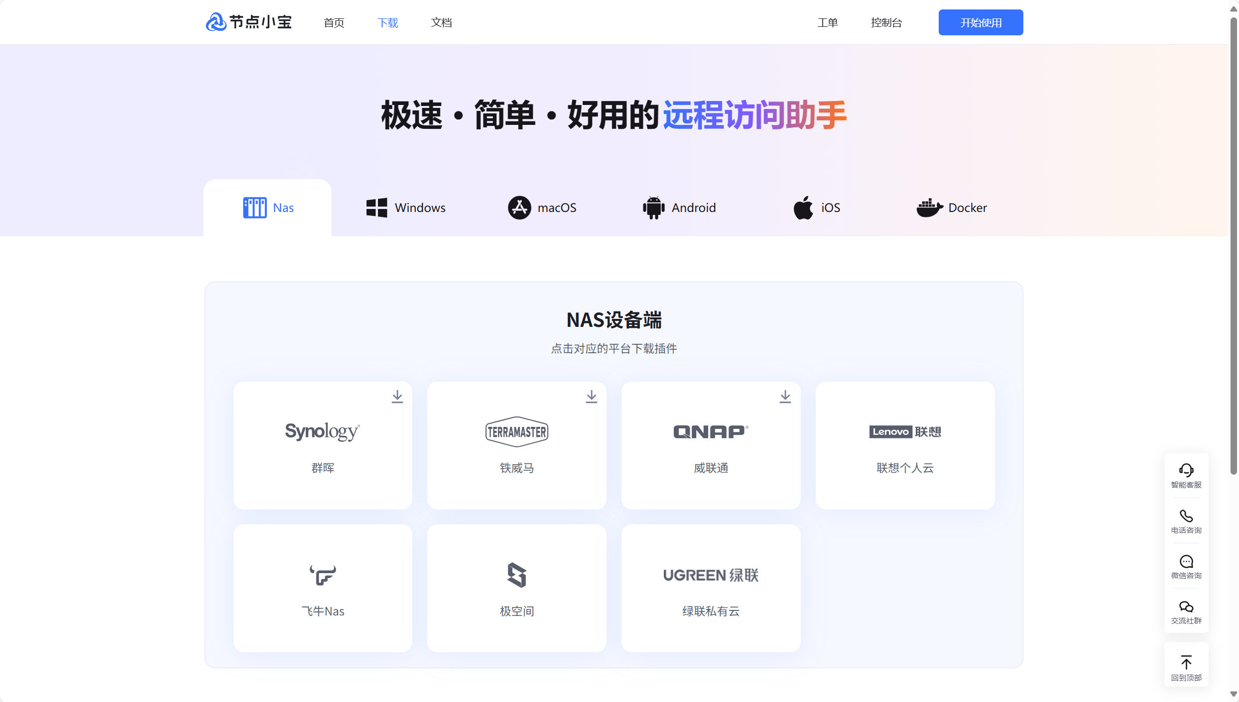 ① 下载客户端: 在 节点小宝官网(或NAS的应用商店)下载对应系统的节点小宝客户端,例如我想要飞牛nas配置内网穿透,那么我就下载飞牛版本的节点小宝,如果我是家里的路由想实现内网穿透、或者本地局域网等那就在这个网络环境下的电脑或者手机APP下载对应的节点小宝客户端;