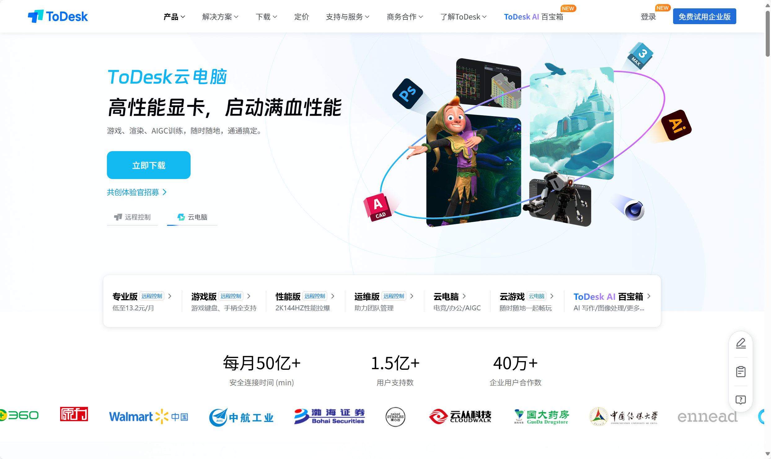 工具免费版个人/年商业/年ToDesk100 设备¥118¥288向日葵限速 300 Kbps¥198¥598RustDesk全功能(自建)00 元(自建)AnyDesk限连接时长¥698¥2000+节点小宝全功能不限速099/年TeamViewer5 min 断连¥1488¥3000+