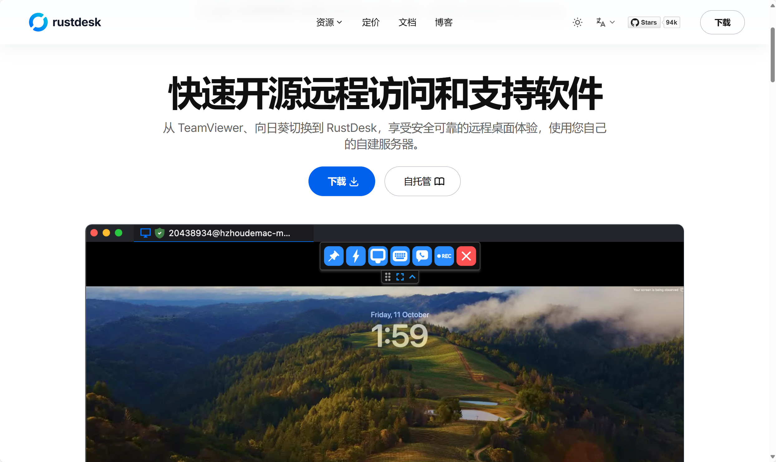 功能远程桌面、文件传输、自建中继/穿透优点100 % 开源,端到端加密;自建服务器数据自掌控系统支持Windows、macOS、Linux、iOS、Android