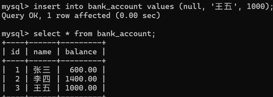 默认情况下,MySQL是自动提交事务的,也就是说我们执行的每个修改操作,比如插⼊、更新和删除,都会自动开启⼀个事务并在语句执行完成之后自动提交,发生异常时自动回滚。