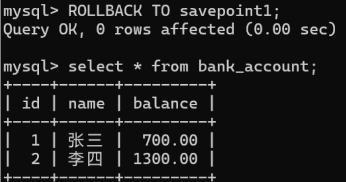 > 在事务执行的过程中设置保存点,回滚时指定保存点可以把数据恢复到保存点的状态