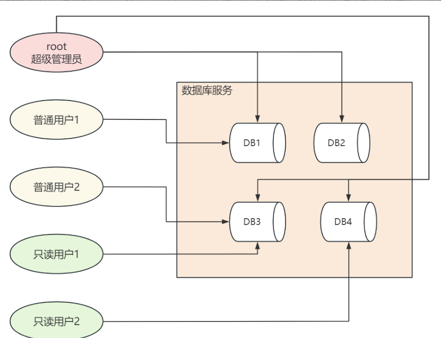 root 可以访问和操纵所有的数据库:DB1, DB2, DB3, DB4