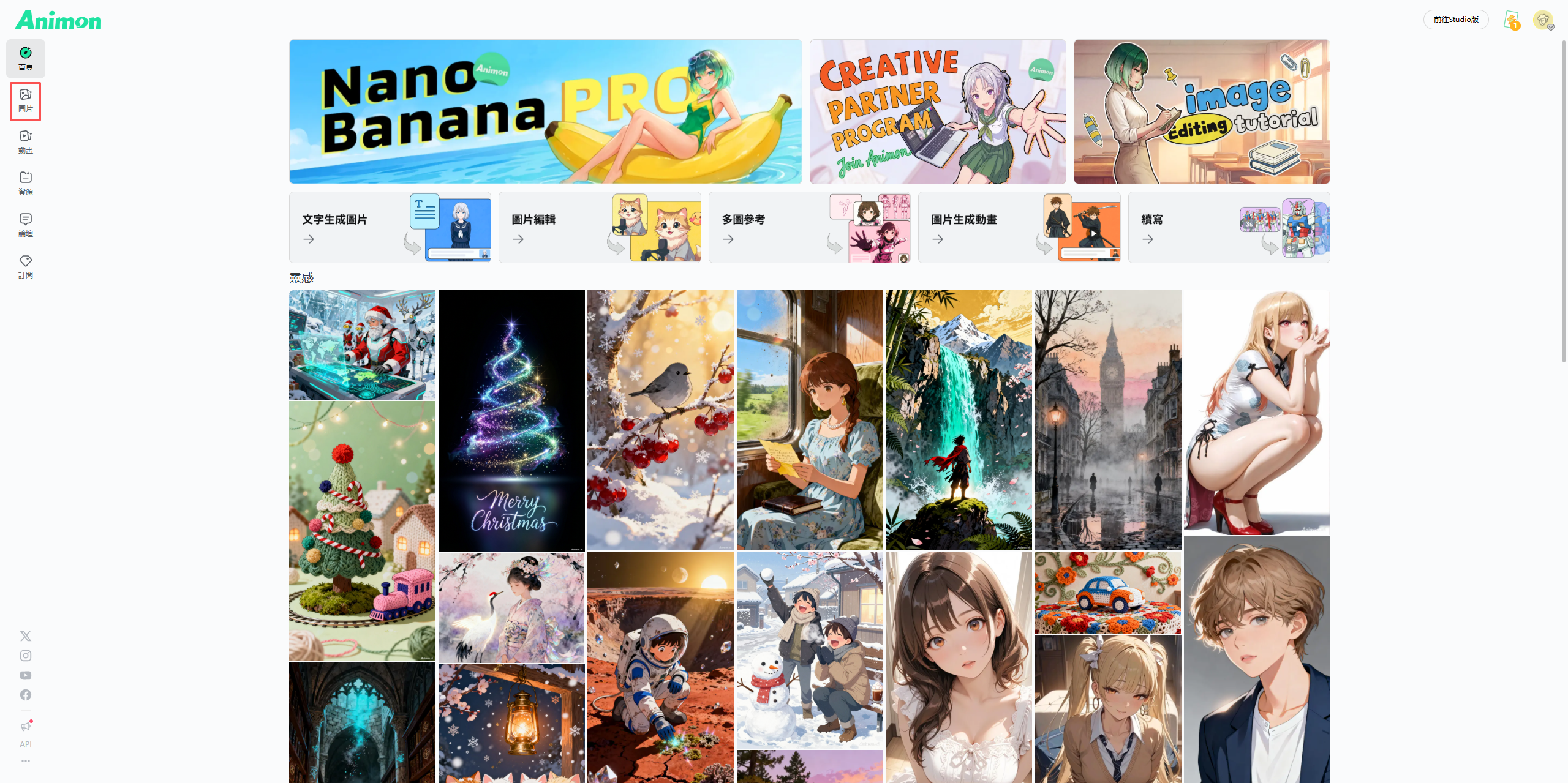 首先打开 Animoon.ai 网站,点击左侧导航栏中的“图片”。