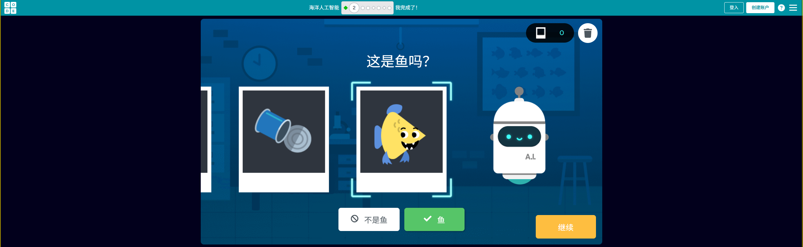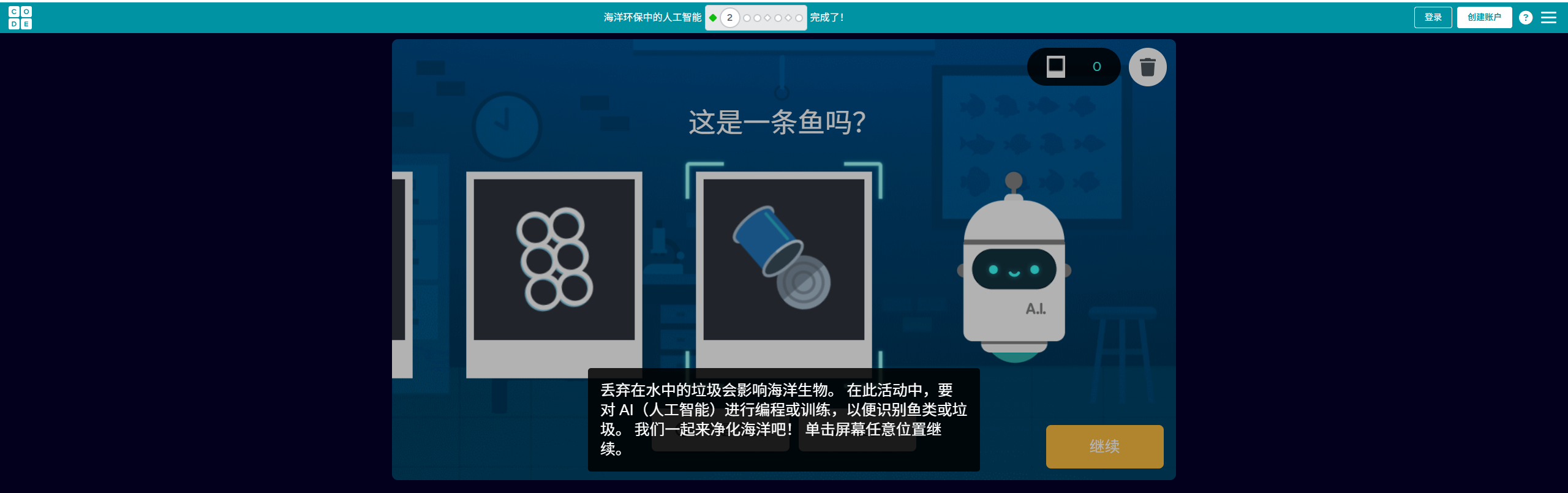 👉 玩法揭秘:打开这个项目,你会看到一个可爱的水下机器人。它的任务是清理海洋垃圾,但它一开始什么都不懂。你需要做的是“训练”它:屏幕上会弹出一张图片,比如一个罐头或者一条鱼。你需要点击告诉机器人:“这是鱼(保留)”还是“这是垃圾(清理)”。