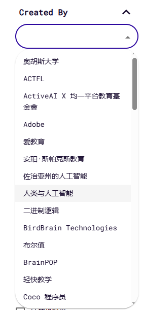 - 按“创建者”选(大厂云集):你想学谁家的技术?在“Created By”(创建者)一栏里,你可以看到ActiveAI、Google、Minecraft(我的世界)等大厂的名字。这意味着你玩的游戏,都是这些顶级科技公司专门开发的教育版本,含金量极高。
