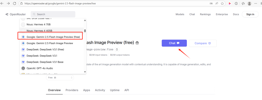 Openrouter 平台,不仅深度集成 Nano-Banana 模型,更实现零门槛操作——打开网页直接搜索模型名称,一键开启对话式生成,在响应速度与画面精细度上完全不输专业工具!