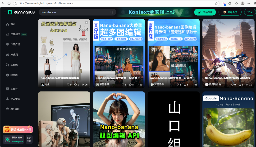 进入平台后直接搜索 Nano-Banana 模型专区,海量功能任你体验(新用户注册立领 1000 积分,每日签到再赠100 积分,搭配 24/48G 显存顶级配置,全程零费用畅用)!