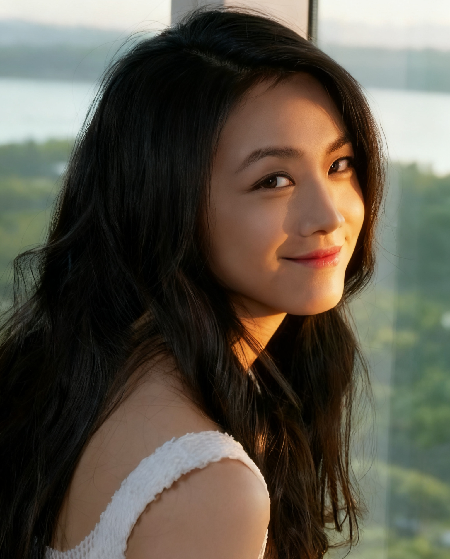 豆包指令:调节一下光影,强化明暗对比突出人物,清晨的第一缕阳光照耀在脸上的感觉。人物不变,只改变光影