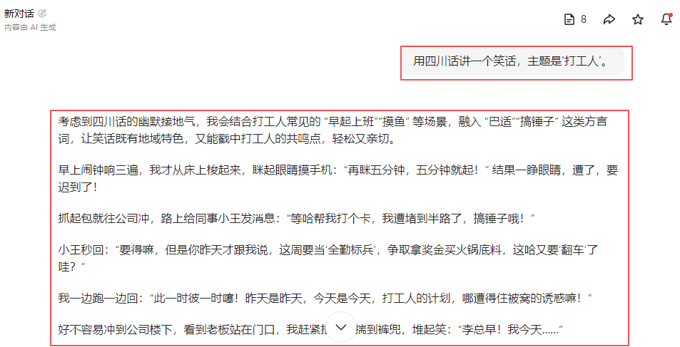 🤣 “用四川话讲一个笑话,主题是‘打工人’。”
