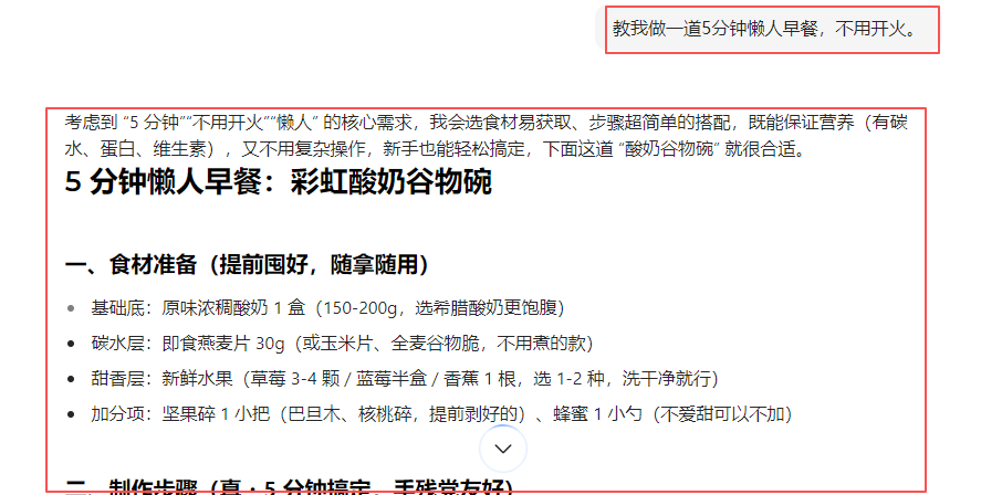 🍳 “教我做一道5分钟懒人早餐,不用开火。”