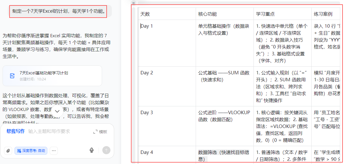 📚 “制定一个7天学Excel的计划,每天学1个功能。”