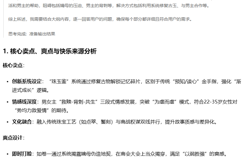 现在你发现了吧?写爽文根本不需要“苦哈哈码字”!你只需要将清晰的指令给到AI,每一步它都会帮你生成、优化那些让你拍案叫绝的重生复仇大戏,其实就是“你给指令,AI变故事”的结果!