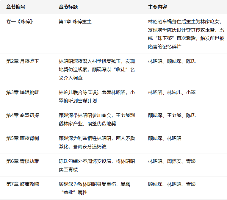 指令:按照以上设定,将这本小说每卷内容分配为20章节,并输出每章节的大概故事内容,按照表格形式输出。