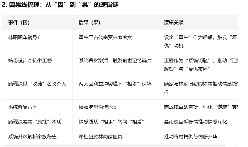 (2)理清因果线。开局的设定前面有很多个事件去造成的(因),引发好多后果(果)
