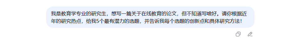 “我是[你的专业,比如:管理学]的研究生,想写一篇关于[大致领域,比如:企业数字化转型]的论文,但不知道写啥好。请你根据近年的研究热点,给我5个最有潜力的选题,并告诉我每个选题的创新点和具体研究方法。