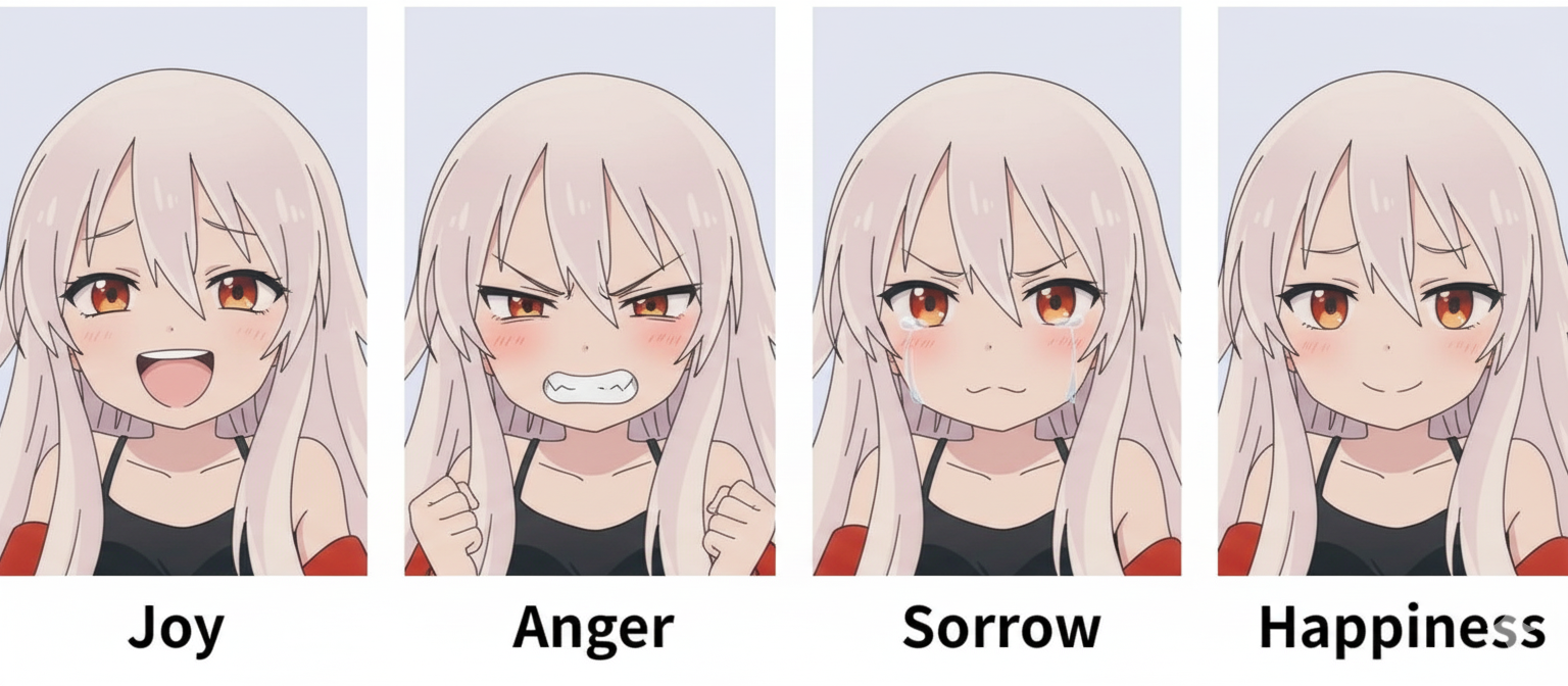 character sheet, facial expression, joy, anger, sorrow, happiness
