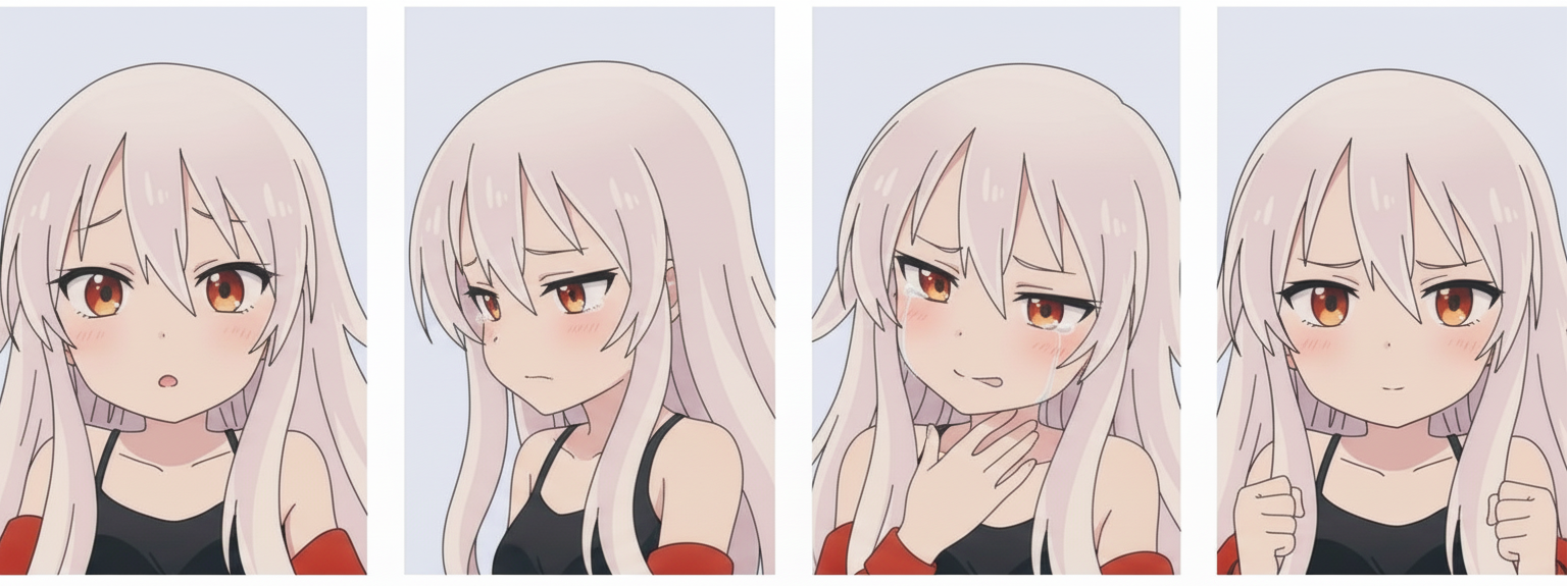 排版格式要先定: 如果要跑四格表情包,请务必先上传一张空白的四格模板图,让 AI 锁定排版和比例。否则,AI 可能只会生成一张包含四种表情的单图。