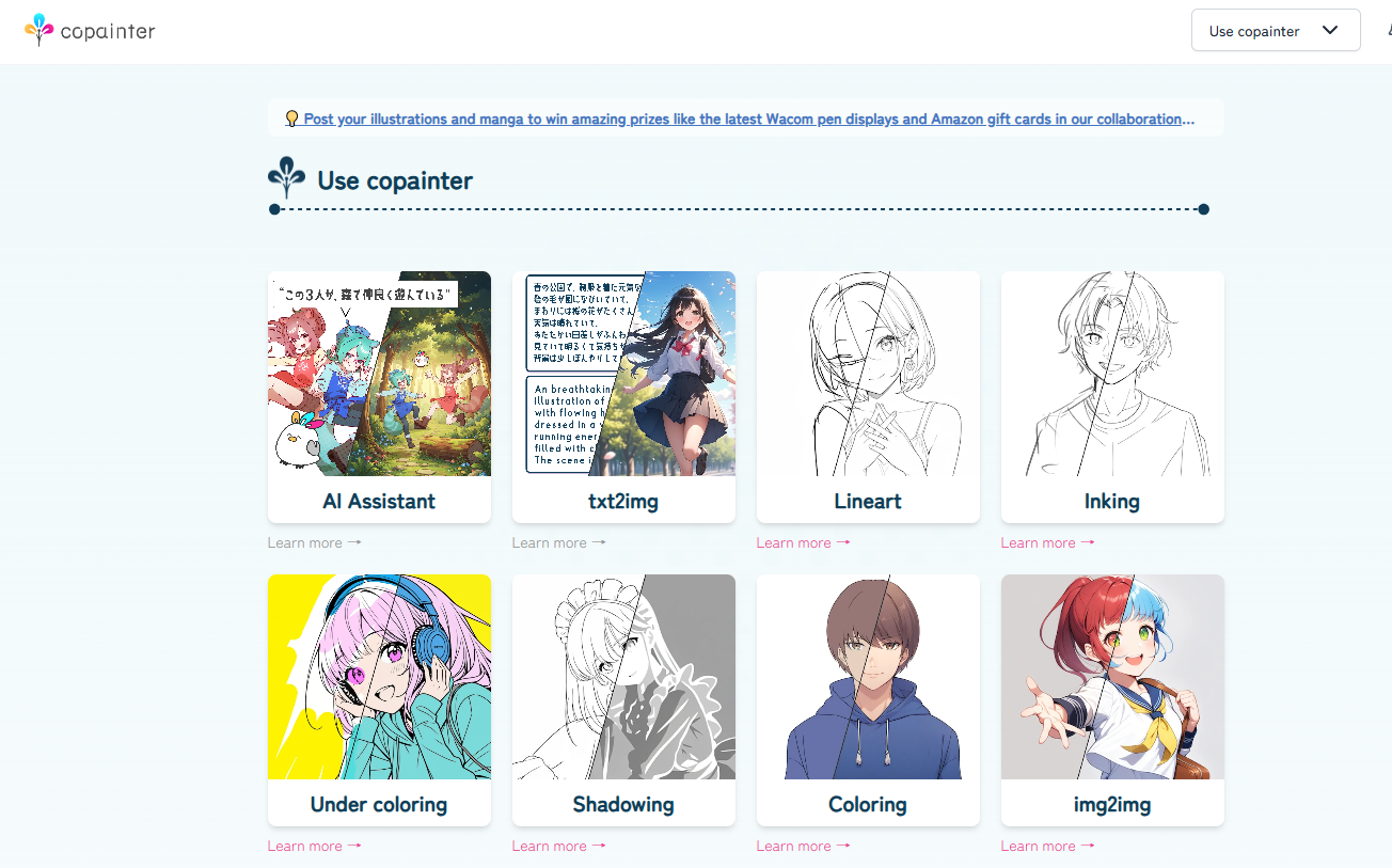 Copainter 是一款来自日本的 AI 插画工具,它的优势在于——不仅会上色,还能理解光影与质感。