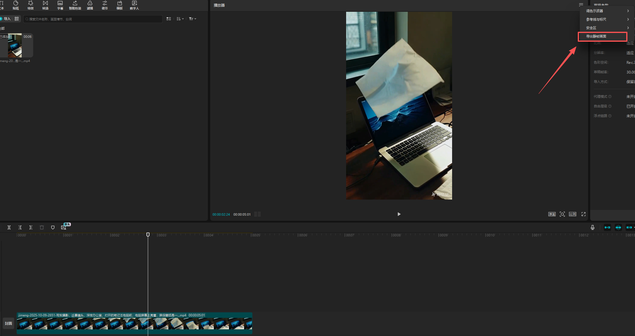拖动时间线,找到纸巾正好落到电脑屏幕一半的那一帧。