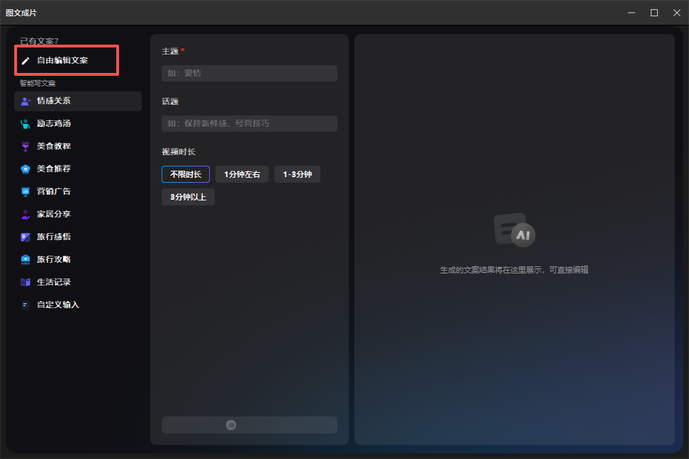 ✅ 选择「图文成片」:系统会自动把文案拆成“文字片段+对应画面”。