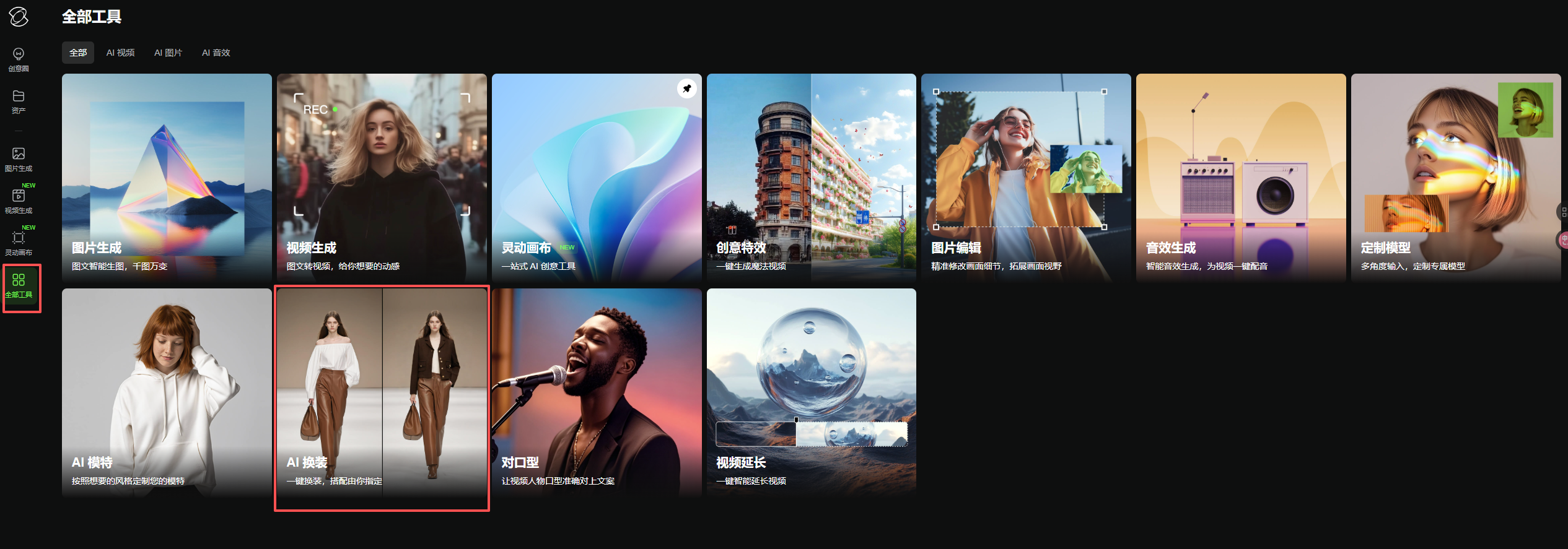 1️⃣ 打开可灵AI,点左边“全部工具”栏,找到“AI换装”功能——界面像手机相册一样清楚,点进去就能用!📸