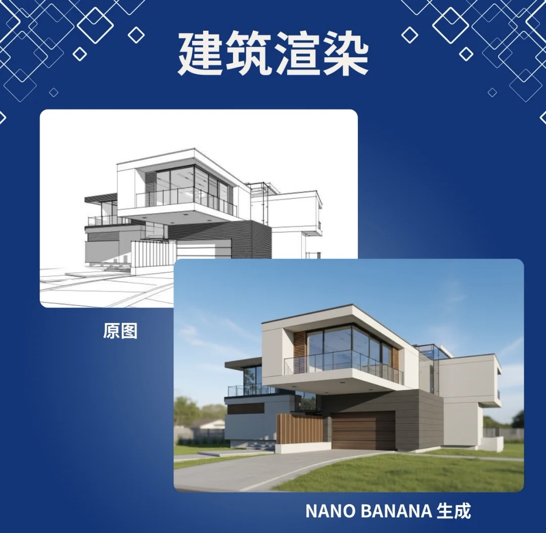 4️⃣ 建筑渲染 草图一秒出效果图,比例精准,光影细腻,堪比专业渲染