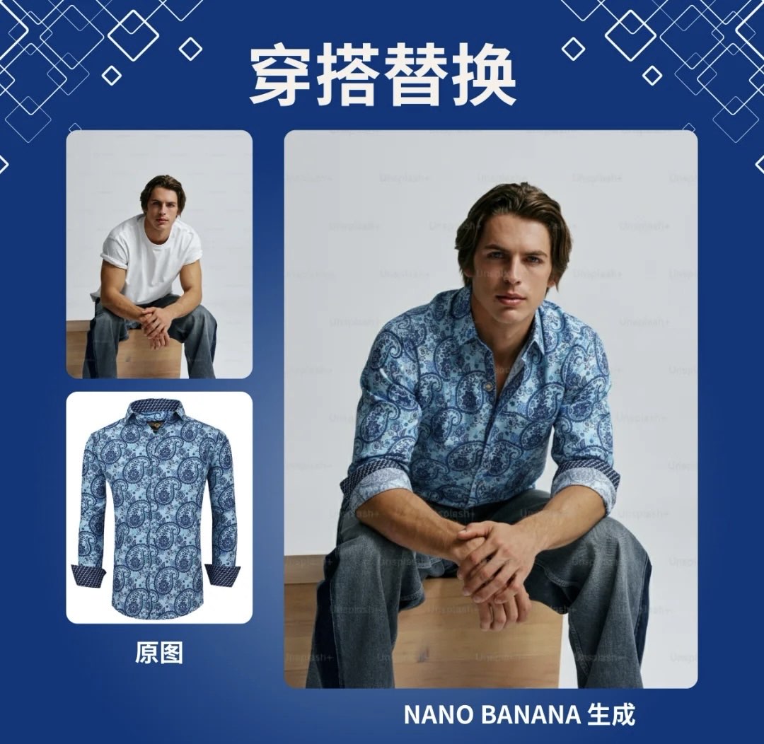 6️⃣ 穿搭替换 模特穿搭随意换,衬衫、西装、连衣裙,效果真实到以为是实拍
