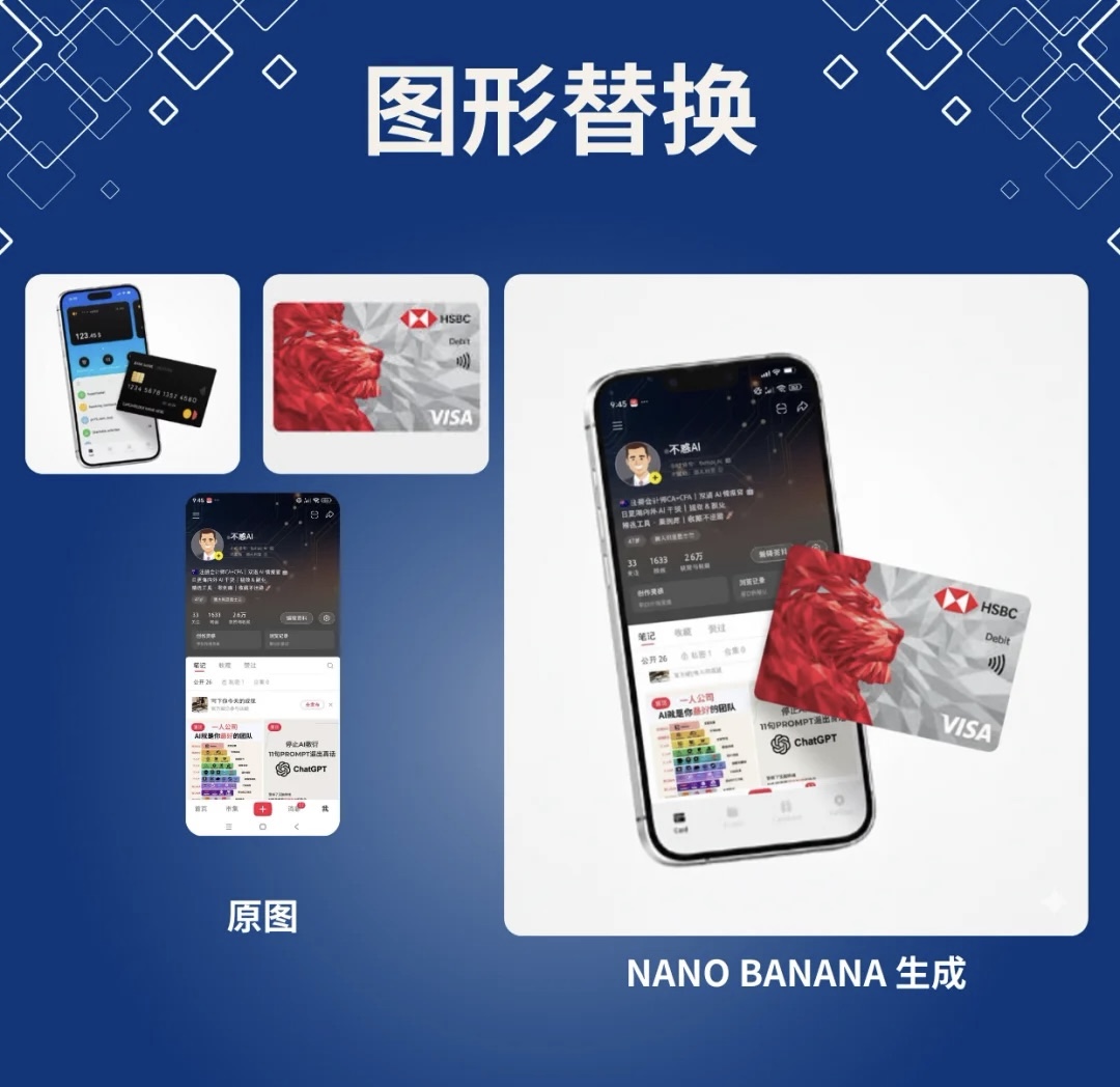 3️⃣ 图形替换 把图片中的元素换成你想要的,比如卡片、标识,完美贴合