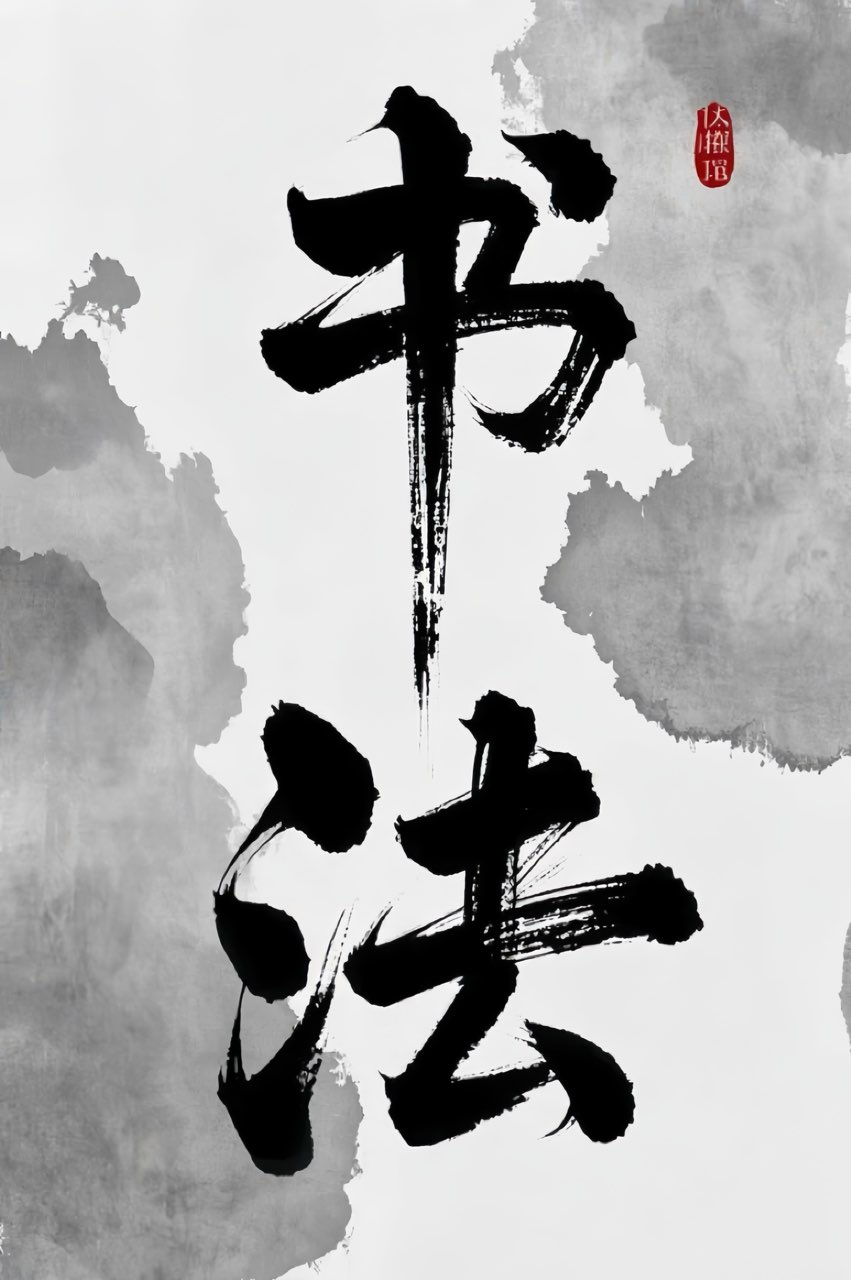提示词:巨大的字体,书法字体,线条流畅,艺术美感,“书法”二字突出,沉稳,大气,背景是水墨画