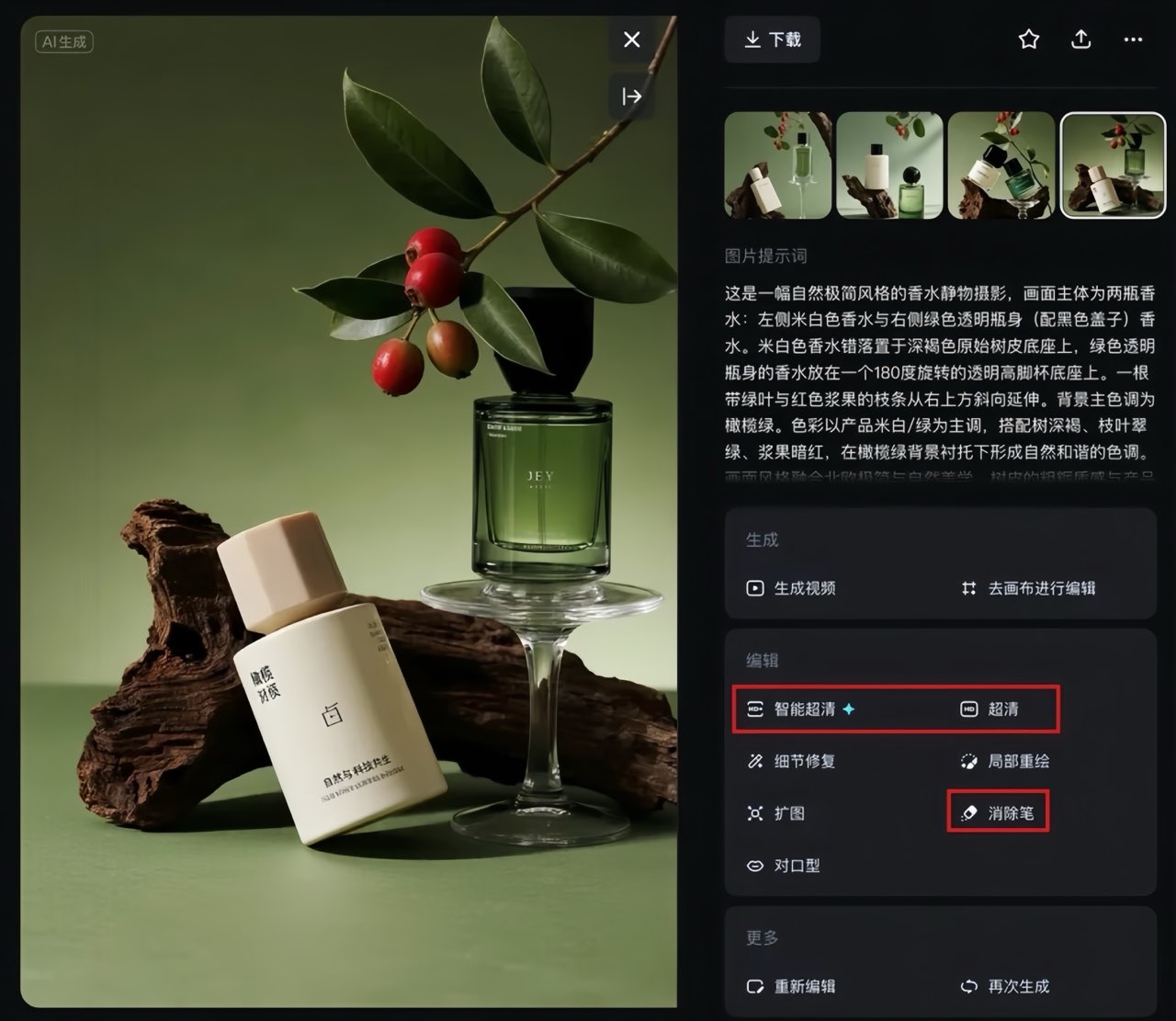 • 用“消除笔”去掉多余元素(比如AI乱加的文字);