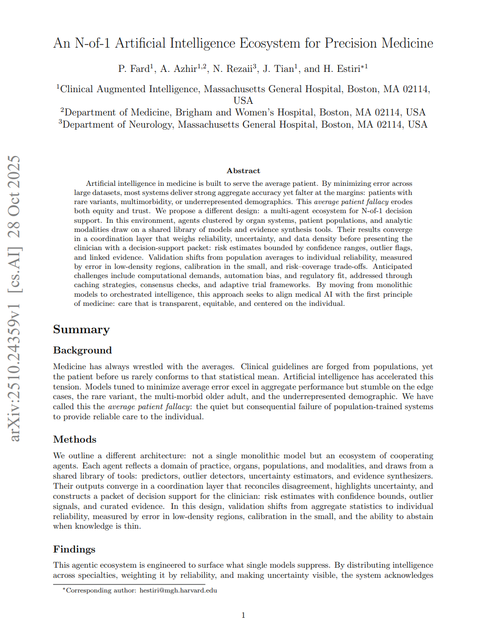来自麻省总院(MGH)的最新研究,提出了一个颠覆性性解决方案:N-0f-1精准医疗人工智能生态系统。