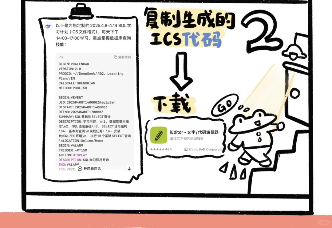 今天给大家分享一个超实用的效率技巧——用DeepSeek快速规划日程、制定自律计划,还能一键导入日历!整个过程1分钟就能完成,简单到离谱 ✎