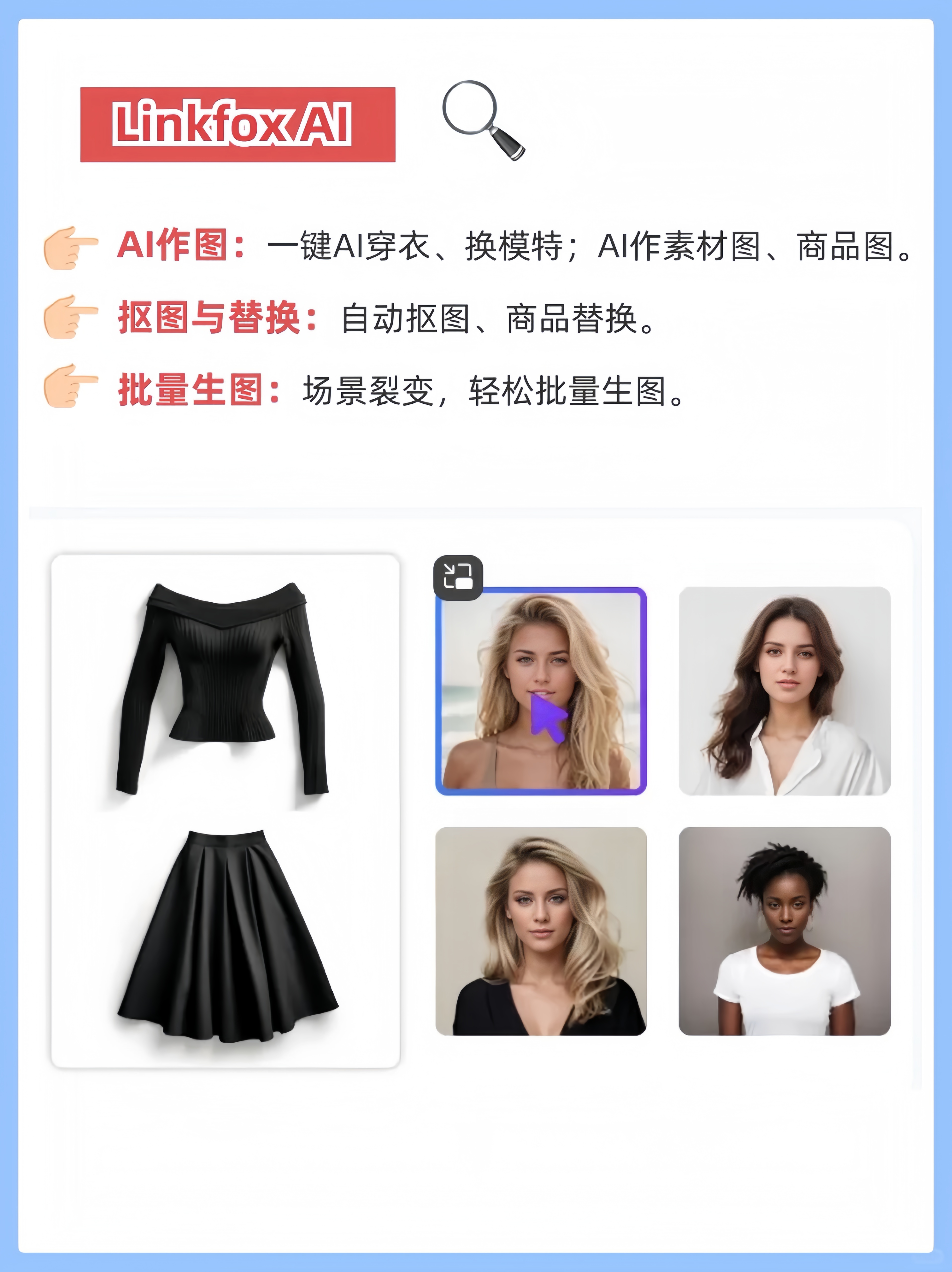 1、 Linkfox AI:一键换装、换模特,自动抠图,批量生成营销素材,设计从未如此简单!