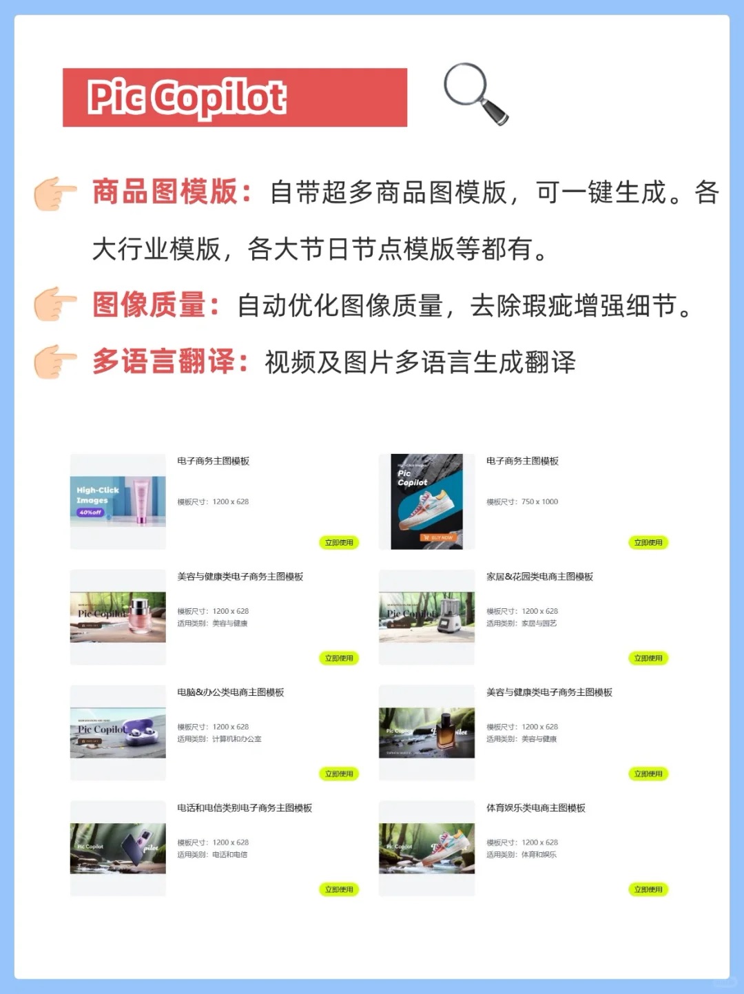 5、Pic Copilot & Mokker:海量商品图模板,一键生成,场景模拟,让产品展示活灵