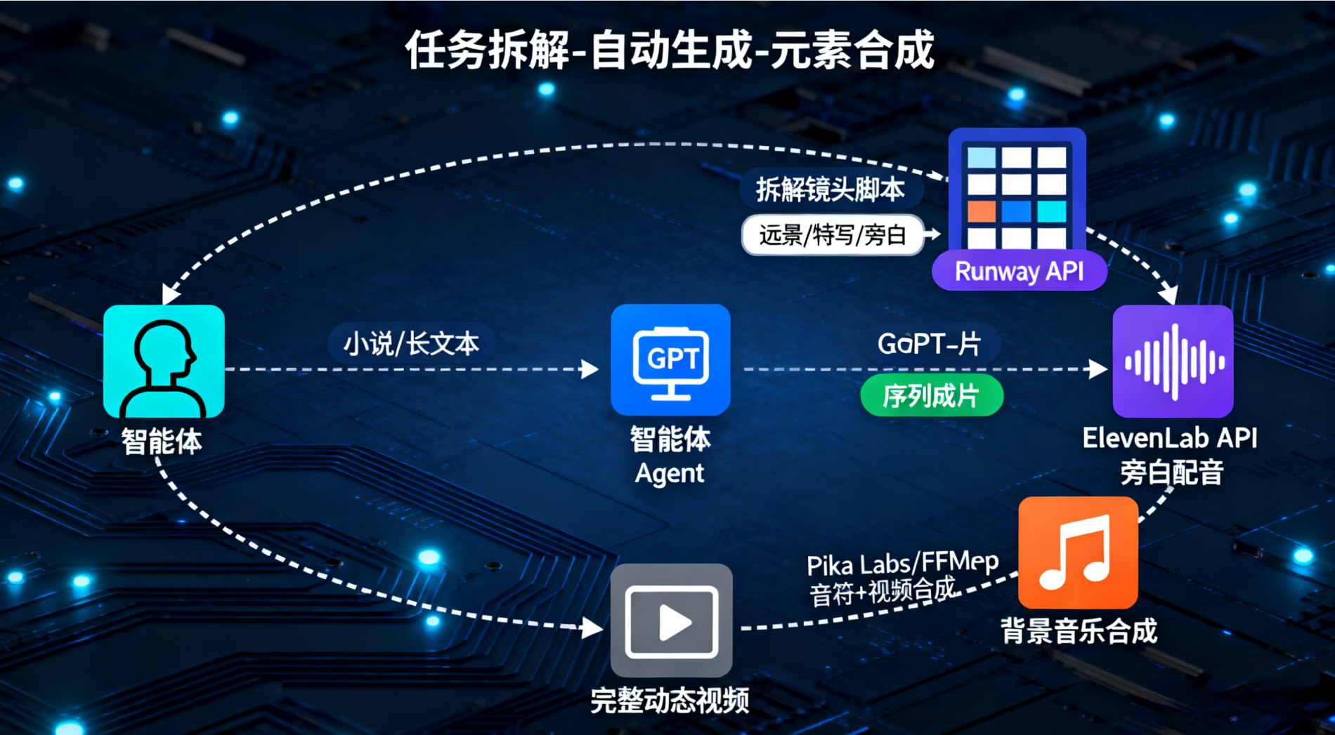 (5)使用 Pika Labs 或其他工具生成特定风格的背景音乐,并用 FFmpeg 自动化合成所有元素。