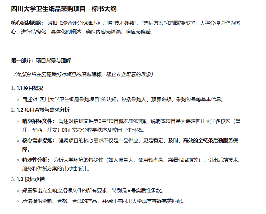 这样写出来的标书不仅有框架,还是私人定制,不会像通用模板那样空洞、无个性。