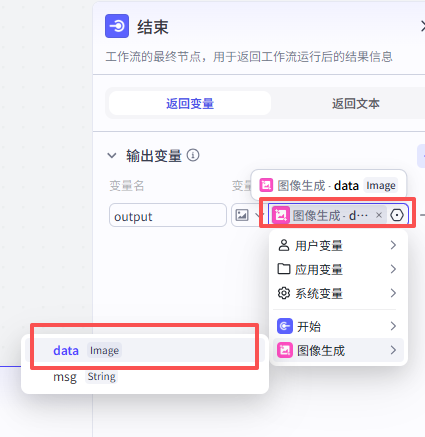 设置输出变量为“图像生成”的“data Image"