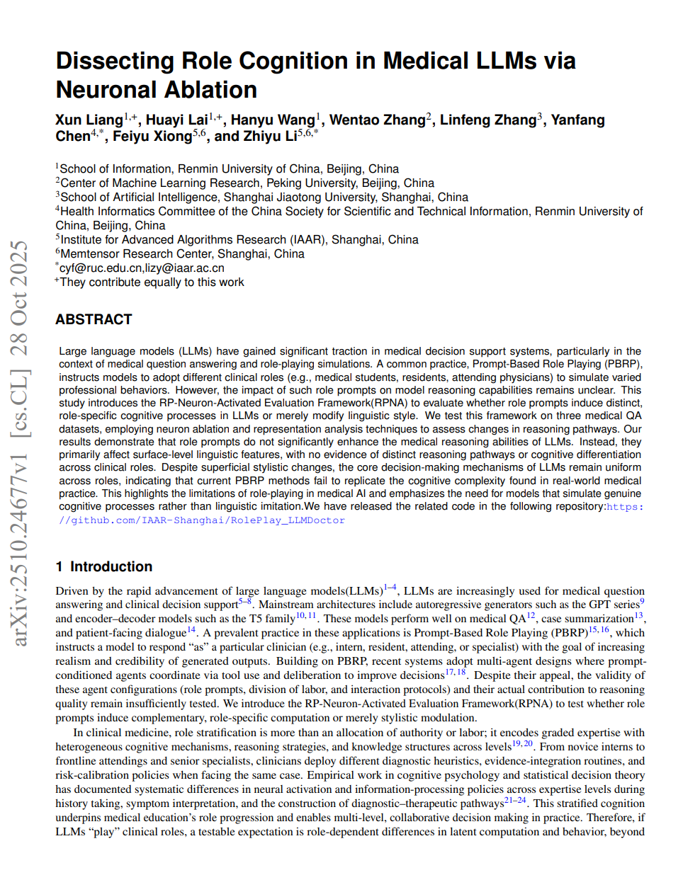 医疗大模型的角色扮演,只改变了语言风格,却没有带来任何认知差异。换句话说,你的角色提示词并未增强AI的推理能力,不过是让AI披上了表面华丽的手术服。