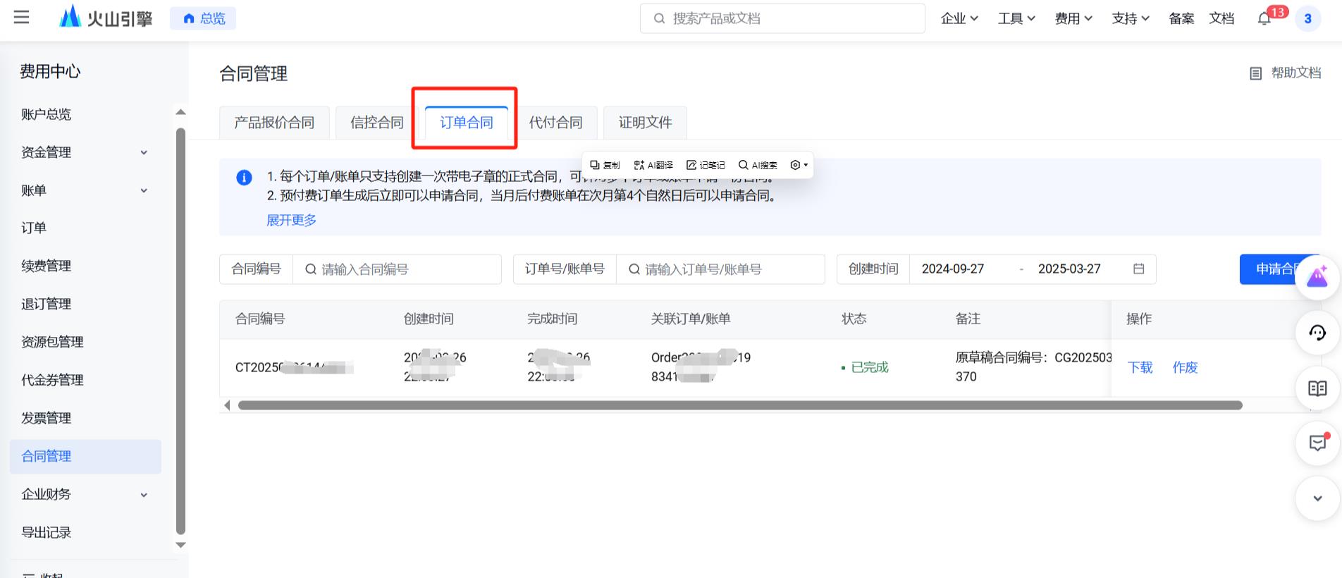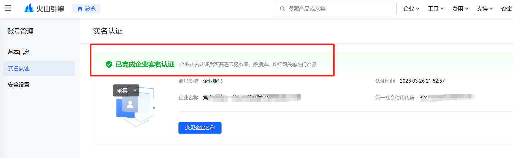13、回到火山引擎下载资质和订单合同,火山引擎要认证成和微信小程序主体一致的企业