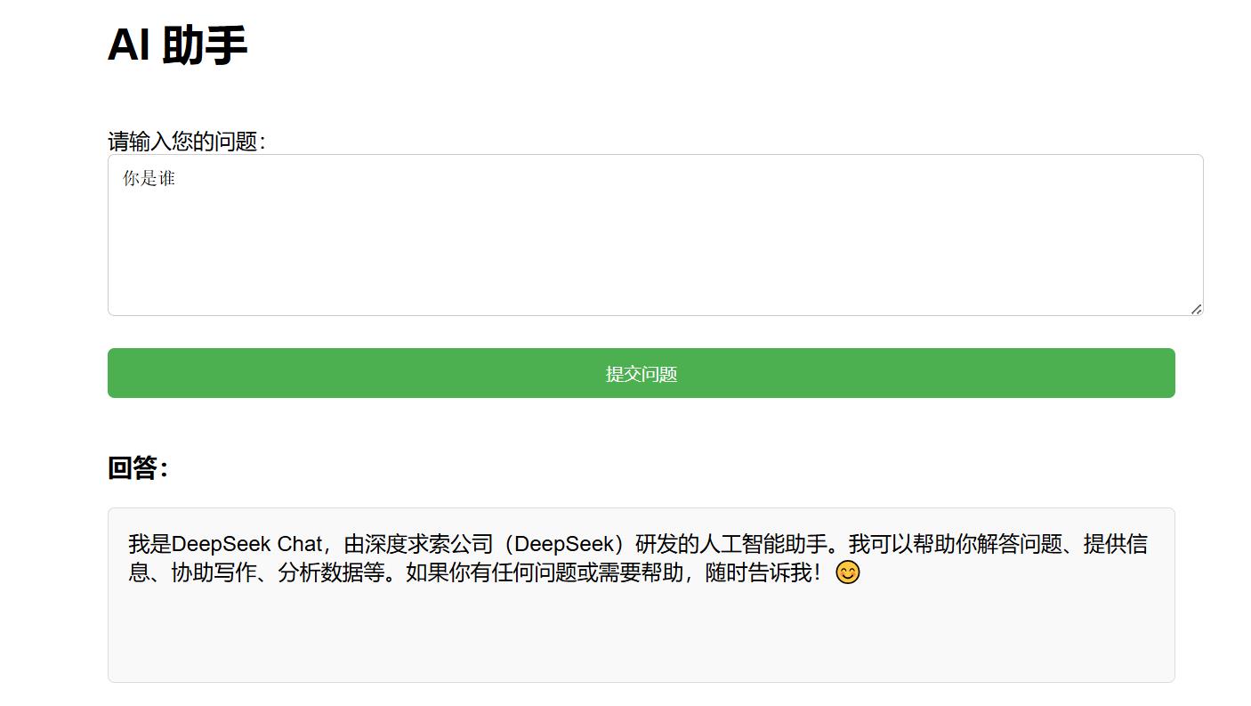 7、将 Cursor 生成后的静态网页打开,输入问题,发现可以使用,接口无误