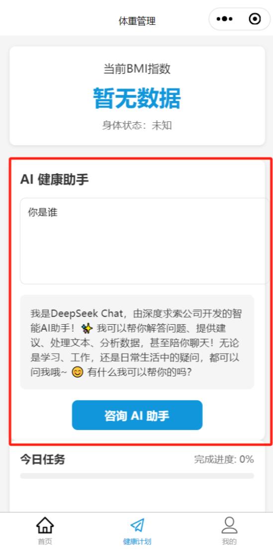 health-plan.wxml 是我要加 AI 功能的页面,提示词如下: