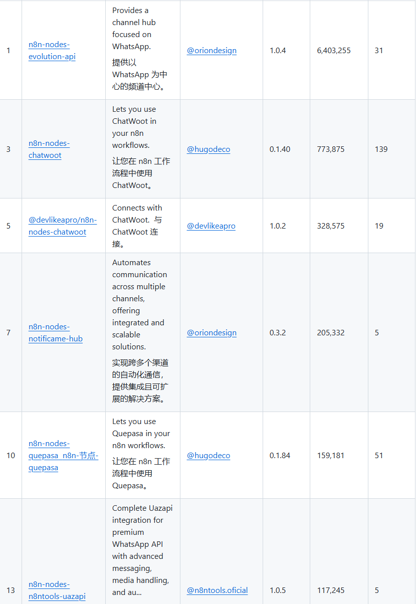 n8n最受欢迎的前10名社区节点下载排行榜(部分截图)