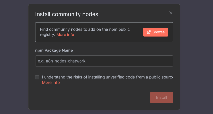 确保你的n8n运行在Node.js 18+环境,这是大多数社区节点的最低要求。