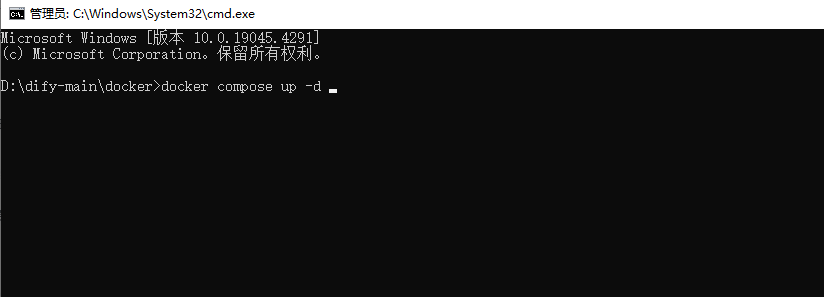 这条命令会自动拉取Dify所需的镜像,包括数据库、后端、前端服务。