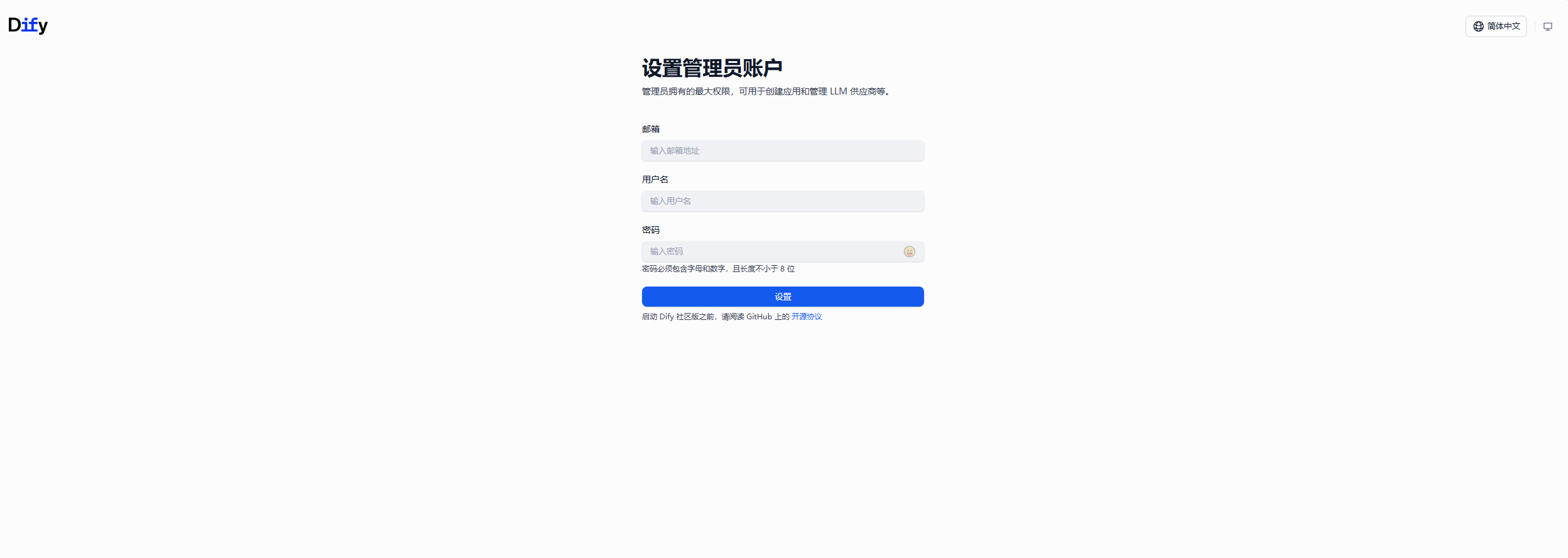 这是Dify的初始化页面。